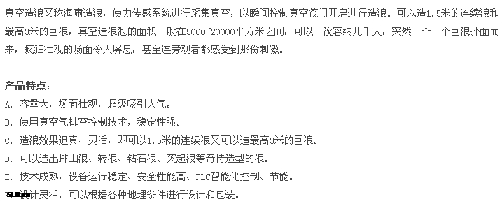 水上樂園設(shè)施您當前的位置:網(wǎng)站首頁 > 產(chǎn)品展示 > 水上樂園設(shè)備 > 水上樂園設(shè)施>造浪池